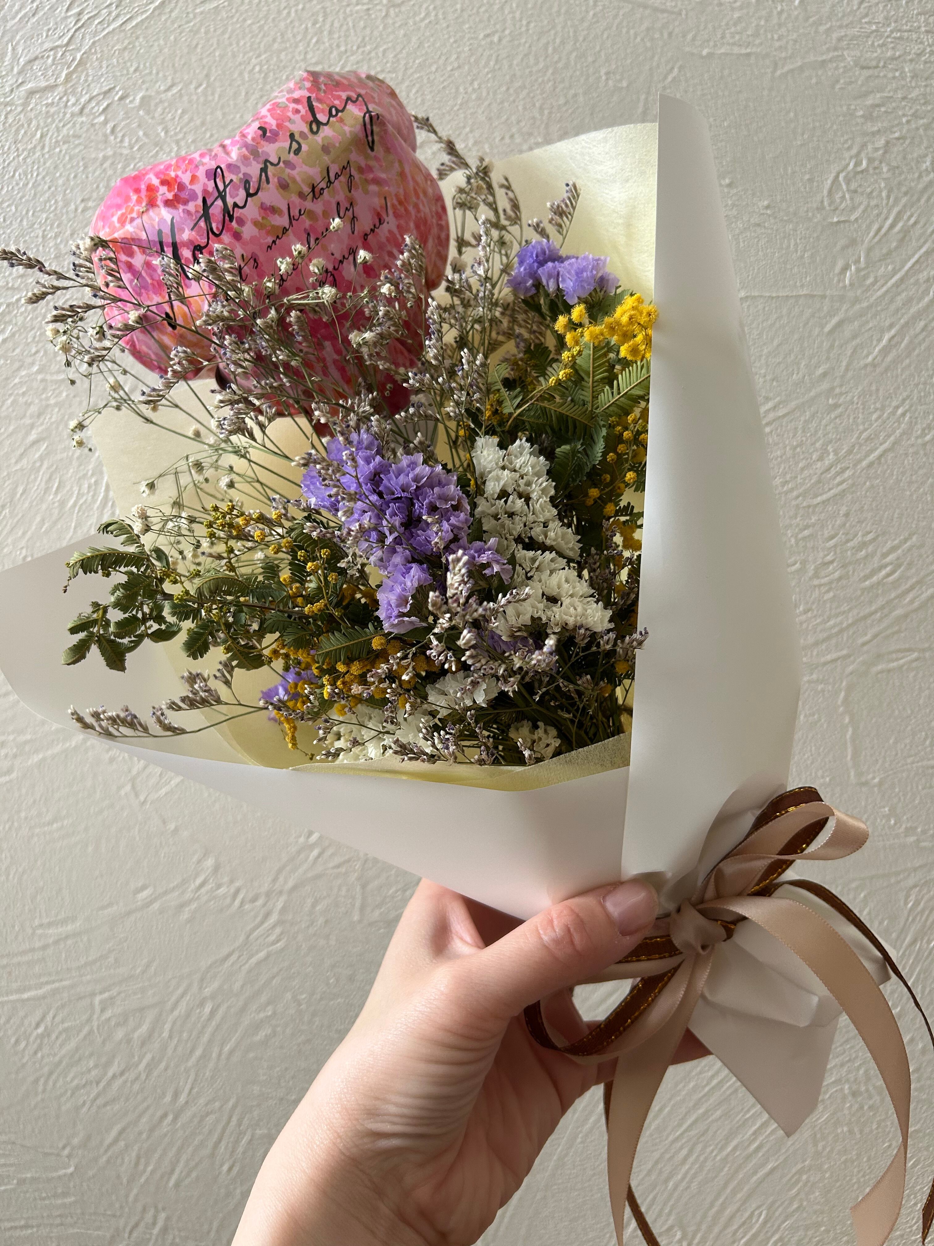 母の日の贈り物にぴったりの、ドライフラワースワッグです。